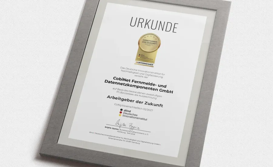CobiNet darf sich auch 2026 über die Auszeichnung als Arbeitgeber der Zukunft freuen. Mit diesem Siegel zeichnet das DIND Unternehmen aus, die sich durch besondere Innovationskraft im Arbeitsmarkt positionieren.