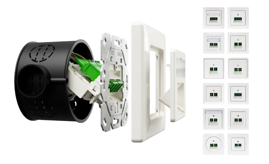 Dezente Optik, 100 % sicher im Betrieb. Die neue Unterputz-Glasfaseranschlussdose WO25 verbindet höchste Übertragungsleistung mit unauffälliger Integration ins Wohnumfeld.