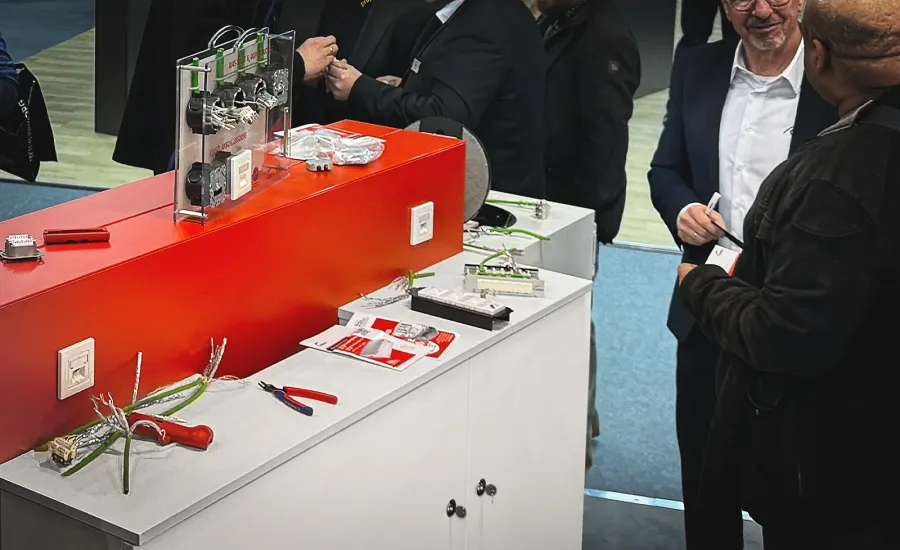 Die Premiere unseres innovativen Kat. 6A Verkabelungssysteme RJ45-TL® auf der Light + Building 2024 hat viele Fachbesucher begeistert. 2026 sind wir wieder mit unserem Praxisbereich dabei.