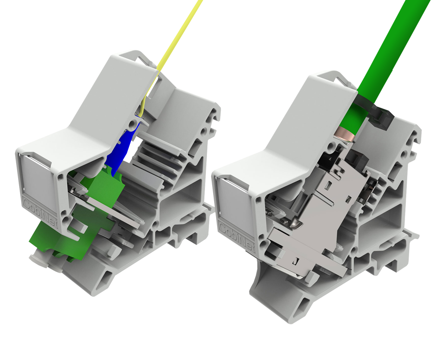 Ein Modulträger für 2 Installationsumgebungen. Die ideale Lösung zur Integration von RJ45-Buchsen im Keystone Format oder Glasfaseranschlüssen in Zählerschränken, Unterverteilern und Schaltschränken mit Hutschienenmontage.
