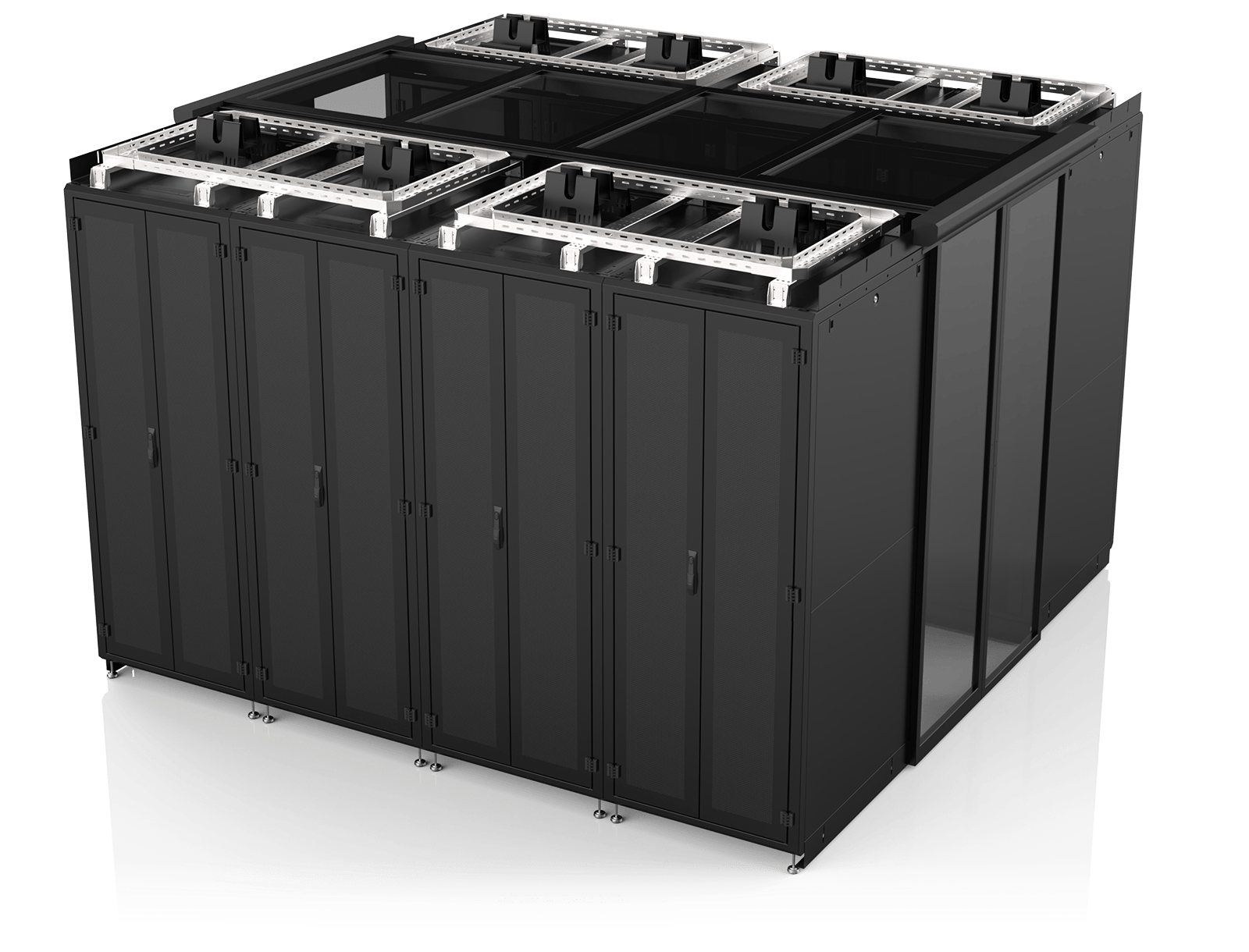 - Effective separation of cold and hot aisles through air guide plates inside the cabinets