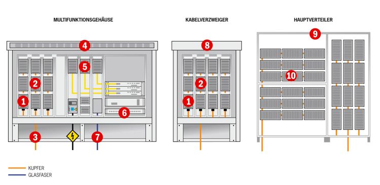 The Cable Head LSA-HD® are suitable for installation in street cabinets with vertical bay rails. The EVs can be delivered both assembled and unassembled.