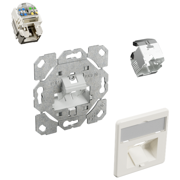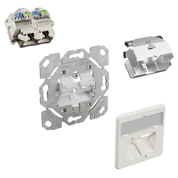 Eine RJ45-TL® Doppelbuchse besteht lediglich aus 2 handlichen Einzelteilen. Dadurch entfällt das lästige Hantieren mit Kleinteilen, die Installation geht schnell und es gibt keine herunterfallenden Kleinteile.