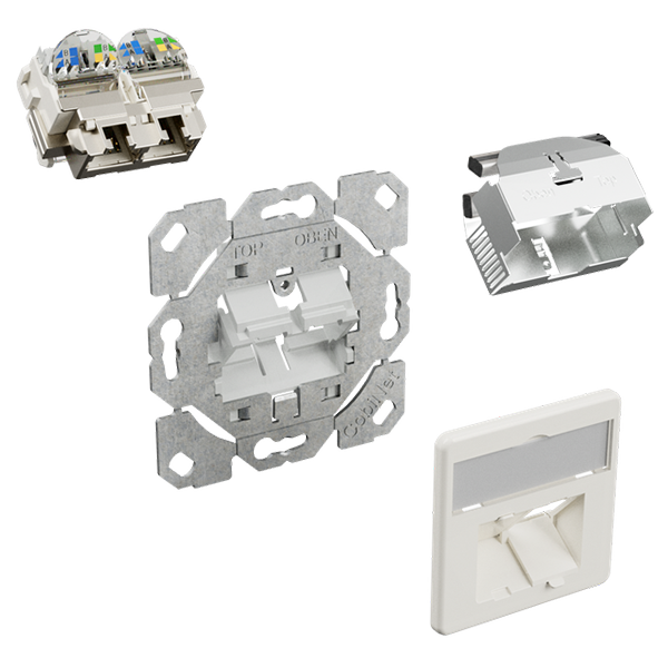 An RJ45-TL® double jack consists of just 2 easy-to-handle individual parts. This eliminates the need to handle small parts, installation is quick and there are no small parts falling down.